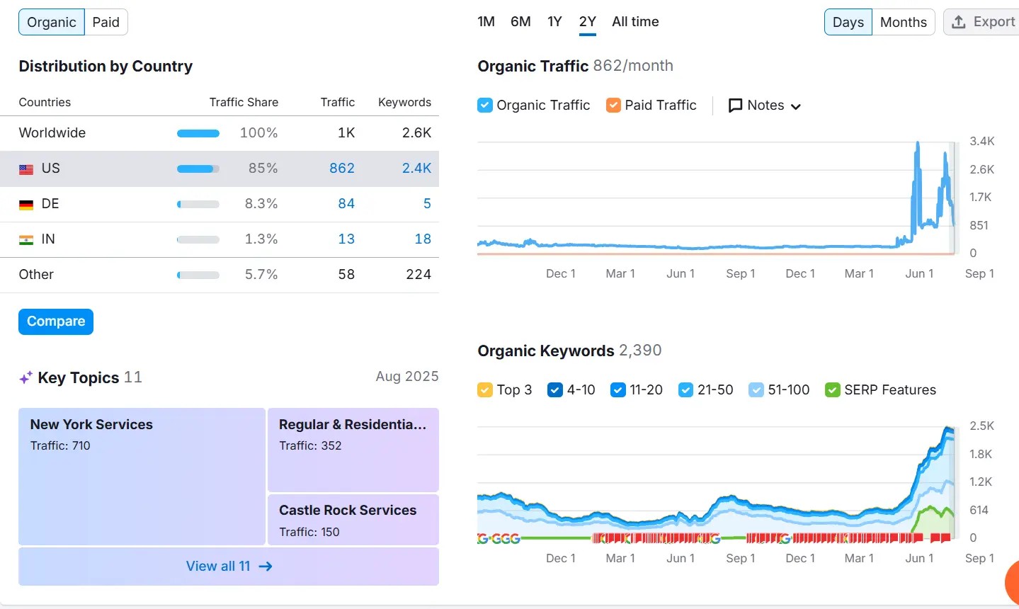 CRMaids experienced remarkable SEO growth, rising from 862 to 8,600 monthly organic visits in just 4–5 months — an impressive 898% increase driven by strategic optimization and consistent local authority building.